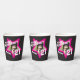Personalise these 21st birthday party paper cups with your own birthday girl's name and photograph. Fun bold hot pink star and text design. Ideal for using at a twenty first birthday party. © Original graphic art and design by Sarah Trett for www.mylittleeden.com