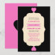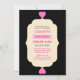 The design shows a coloful vibrant elegant custom quinceanera invitation in pink, creme and black. The design is extremely eye-catching and quite unique.