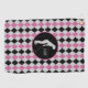 Pink Black Argyle Silhouette Golfer Monogram Golf Towel