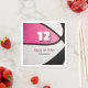 These cute basketball themed birthday party paper napkins are fully customisable and feature the realistic, abstractly oversized image of a basketball that has alternating pink, black and white panels - personalise with your custom text - by katz_d_zynes