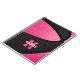 This cute basketball themed spiral notebook features the realistic image of an abstractly oversized basketball that has alternating pink and black recolored panels - athlete's name and monogram, varsity letter, or jersey number are customisable on the front cover - by katz_d_zynes