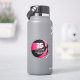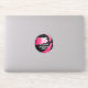 This custom basketball sticker features the realistic image of a basketball that has alternating pink and black recolored panels, upon which you can personalise the athlete's name and jersey number plus school or club name and mascot name - by katz_d_zynes
