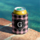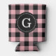 Pink Black Buffalo Check Plaid 1I Monogram Can Cooler