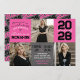 Pink & Black Modern Chalkboard Graduation Photo Invitation on Grey Chalkboard