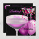 Pink Black Champagne Cocktails Birthday Party Invitation
