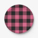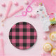 Pink & Black Chequered Squares Buffalo Plaid Paper Plate