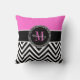 Pink Black Chevron Monogram Elegant Throw Pillow