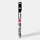 Trendy black + white damask and polka dot pattern with bright pink elements. This trendy girly iphone case features a black, pink and white template for your customisable name and monogram.