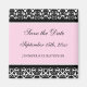 Custom wedding save the date magnets in elegant light pink, black and white classic floral damask pattern. Customise this wonderful keepsake with your names and wedding date, the perfect reminder for your wedding guests.