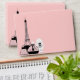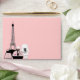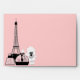 Pink Eiffel Tower Paris envelope complete with Paris bound fashion luggage, purse and poodle.