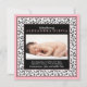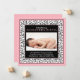 The text and baby photo on this chic baby girl baby pink, black, and white floral damask photo birth announcement are fully customisable. To change the text and photo, use the personalise options. For more extensive changes to the announcement, including changes to the font, font colour, font size, photo size, and/or text/photo placement, use the customise it option. The colours on this retro floral birth announcement are black, white, and baby pink. It would look great with a black and white baby photo as well.