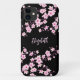 This phone case features pretty pink cherry blossoms on a black background. Customise it with your name. For girls and women who love flowers and floral Asian designs.