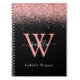 Modern notebook in black and pink glitter, elegantly adorned with your script monogram, first name and initial.