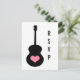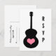 Hip and stylish Guitar Heart Wedding Response Postcard featuring a black acoustic guitar and a cute light pink heart. This modern and unique wedding rsvp postcard is perfect for a rocker chic music-themed wedding! Easy to customise, simply add your wedding details in the text fields provided. Click on the "Customise It" button to find additional personalisation options.