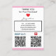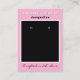 Handmade Jewelry typography in white. Name in black against pastel pink background. Crafted with Love written in black script (keep or insert short tagline, or delete to leave area blank). Name will appear on front and backside. Two Small Circles against black and white framed background. NOTE: Circles are not pre-cut, you will need to use a small hole punch to make clean cut holes, to then place your Earrings in. Backside: Insert telephone number, email address, website, social media handle, as needed. Insert Your Business QR Code on left-hand side for customers to Shop 24/7, and Pinterest (or other) social media link site QR Code on right-hand side (leave Pinterest icon, or insert other social media icons, or delete icons). Original Design by TamiraZDesigns.