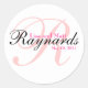 Pink Black Monogram Classic Round Sticker