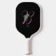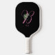 Pink black monogram watercolor flower Pickleball Paddle. For national pickleball day.