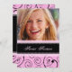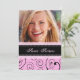 Custom Photo 16th Birthday party invitations in elegant black and pink swirls pattern. Add your name, photo, and party details for a unique and stylish sweet 16 birthday party invitation.