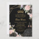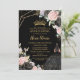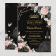 Pink Black Purple Roses Dress Gold Quinceañera XV Invitation