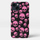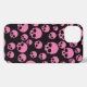 A pattern of random skulls in a cute gothic pink and black colour scheme.
