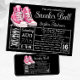 Pink sneaker ball invitation with pink sneakers on a black and silver shoe label background. This pink sneaker ball invitation is easily personalised for your event by simply adding your details. You can also change the background colour and text colour.