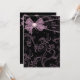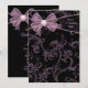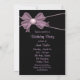Black and pink swirl background with a pink bow birthday party invitation. Customise the front and back with your choice of font style and font colour.