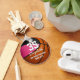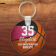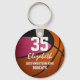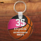 This custom basketball themed keychain features the realistic image of a basketball that has two recolored panels--one black and one pink - easily customise with player name & jersey number, plus school name and mascot name - by katz_d_zynes