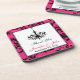 This personalised, modern and trendy hot pink, black and white ballroom chandelier wedding favour coaster set of 6 has a background pattern of pink and black ornate scrolls on it that would be ideal way to thank your wedding guests, or give as a keepsake to the Newlyweds or wedding party attendants. Break up the set of six into pairs of two, drop them into an organza bag, tie off with a ribbon and favour tag, and you'll have a useful favour to hand out. The text is customisable. If you require any other matching items, please email your request to niteowlstudio@gmail.com.