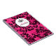 This personalised modern and trendy hot fuchsia pink, black and white ballroom chandelier wedding planner notebook with name has a background pattern of pink and black ornate scrolls on it that would be ideal for jotting down your wedding plans and details in. The text is customisable. If you require any other matching items, please email your request to niteowlstudio@gmail.com.