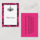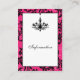 This modern hot pink, black and white chandelier wedding information enclosure card has a pink and black scrolled pattern border that matches the wedding invitation shown below. You can also use it for a directions, gift registry, or wedding website or a wishing well card. If there are any other matching items you require, please email your request to niteowlstudio@gmail.com.