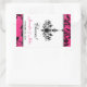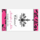 This modern and trendy personalised hot fuchsia pink, black and white chandelier wedding wine label or water bottle sticker has a background pattern of ornate flourishes, scrolls and swirls on it that matches the wedding invitation shown below. If you need assistance, or require any additional matching items, please email your request to niteowlstudio@gmail.com.
