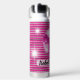 Pink Black White Stripe Disco Ball Sparkle Name Water Bottle