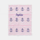 Pink blanket with nautical anchors, monogram