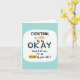 This get well soon greeting card features a clean white rounded square shape with a calming light blue border. Inside, you'll find a mix of font styles and colours creating a motivational quote that reads "EVERYTHING" in bold, vibrant multicolored letters at the top. Below that, "is GOING" is written in smaller black and yellow text, followed by "TO be" in small black text. The phrase concludes with a reassuring "OKAY" in large dark blue letters, and "(and if it's not, i'll be RIGHT by your side)" in smaller black text, with "RIGHT" underlined in cheerful yellow. This card exudes positivity and comfort, perfect for sending well wishes and support. 🌟🌷