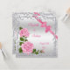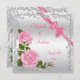 Beautiful custom wedding party invitation for couples special day. Elegant, glamourous and sophisticated custom personalised wedding invites with a pretty romantic corner bouquet display of pink roses and greenery, a shiny silk pink corner bow and a chic, trendy glitz and glam border frame of bling rhinestones jewels diamonds images printed on a stunning classy gradient silver background. The reverse has the same design with your event details. These are beautifully designed invitations for weddings with cute, stylish, girly flowers and bow in pink and silver colours. Perfect invites for weddings. A fashionable modern design with a sophisticated romance look. SOME ELEMENTS USED ARE BY SNAPPYSCRAPPY AT HTTP://SNAPPYSCRAPPY.COM. All text is fully customisable to meet your requirements, if you need help to customise your product please contact me through my store and i will be very happy to help you.