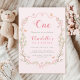 Pink Blossom Floral Frame 1st Birthday Invitation