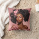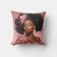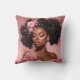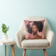 Accentuate your space with this throw pillow, graced by a black woman's portrait with lush curls and pink floral adornments.