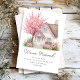 Introducing a beautifully crafted moving announcement card that perfectly embodies the spirit of joy and fresh beginnings. This enchanting card showcases a stunning watercolor illustration of an endearing pink house, nestled snugly amidst a lush, vibrant array of pink and flowering plants that dance in the gentle breeze. Towering nearby is a whimsical tree, its branches adorned with delicate blossoms that seem to flutter with excitement for the new memories to come.