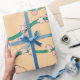 Pink Blossoms Green Vines Floral Print Retro Wrapping Paper