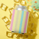 Pink, blue and brown stripes on yellow can cooler