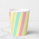 Pink, blue and brown stripes on yellow paper cups