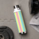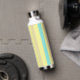 Pink, blue and brown stripes on yellow water bottle