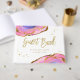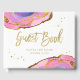 This elegant, modern wedding guest book features trendy pink and blue watercolor geode stones with faux gold handwritten script and accents.