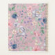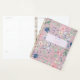 The planner's cover design is a stunning multicolored floral design, featuring beautiful pink, yellow, blue and blue-grey flowers, as well as green and blue-greenery. The background colour of the design is a soothing purple with tones of grey, adding an elegant touch to the planner's overall look.