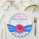 NOTE: this is a flat, printed paper plate without any 3D elements. The pink daisy flower and blue ribbon are printed on the paper.