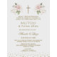 Pink Blue Floral Girls Twins 1st Birthday Baptism Invitation