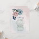 Beautiful botanical wedding seating chart card featuring pink, dusty blue and navy blue flowers with green leaves.