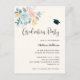 Graduation invitation with a pretty watercolor illustration. A flower bouquet with pink and blue flowers surrounded by green leaves and sprigs.