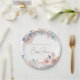 Personalise this Elegant Boho Floral Baby Shower paper plate, perfect for celebrating the excited mum-to-be. This feminine design features a charming arrangement of dusty pink, beige, and blue flowers and leaves, set against a crisp white background. The combination of rustic and bohemian elements creates a boho chic atmosphere, making these paper plates a delightful addition to your Baby Shower Party, Lunch or Picnic.