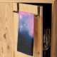 A kitchen towel with a beautiful abstract design in pink and blue. White stars sprinkled throughout this image of the cosmos. Trippy and cool.